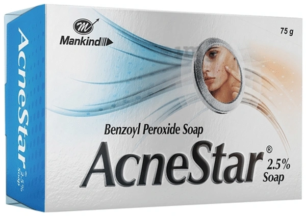 - Acnestar साबुन में बेंज़ोयल पेरोक्साइड होता है जो तीन तरह से मुंहासों का प्रबंधन करता है: बैक्टीरिया को मारकर, मृत त्वचा कोशिकाओं को छीलकर और अतिरिक्त त्वचा के तेल को सुखाकर