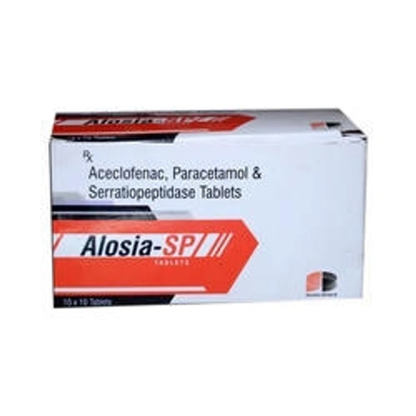 Alosia-SP Tablet is a combination medicine used to relieve pain and swelling in various conditions like muscle pain, joint pain, and postoperative pain. Thus, it effectively alleviates pain and inflammation in conditions like rheumatoid arthritis, ankylosing spondylitis, and osteoarthritis. Alosia-SP Tablet should be taken in the dose and duration as advised by your doctor. It should be taken with food or milk to prevent stomach upset. Taking the medicine regularly at the right times increases its effectiveness. It is important to keep taking the medicine regularly until your doctor tells you it is safe to stop.