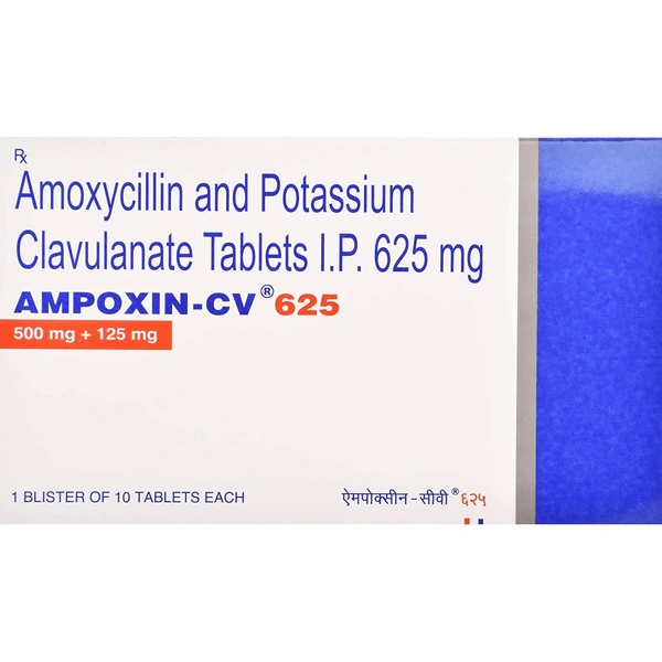 Ampoxin-CV 500mg/125mg Tablet contains two different medicines, Amoxycillin and Clavulanic Acid, that work together to kill the bacteria that cause infections. Amoxycillin works by stopping the growth of bacteria. Clavulanic Acid reduces resistance and enhances the activity of Amoxycillin against bacteria.