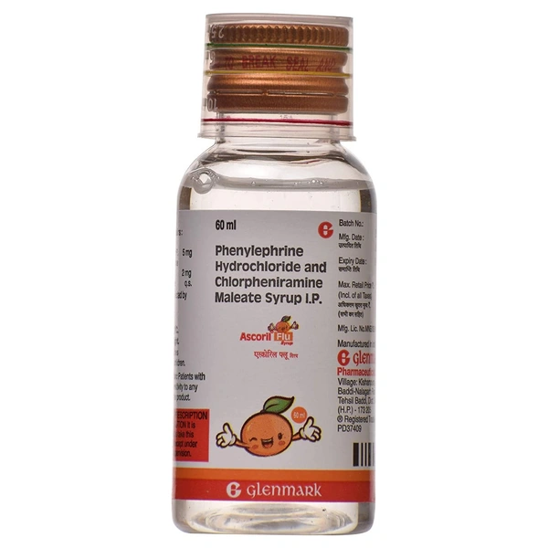 Ascoril Flu Syrup is a combination medicine used in the treatment of common cold symptoms. It relieves allergy symptoms such as runny nose, stuffy nose, sneezing, watery eyes and congestion or stuffiness.