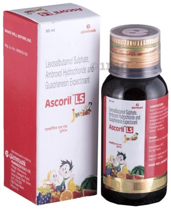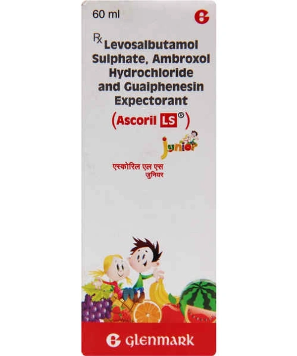 Ascoril LS Junior Syrup is a combination medicine used in the treatment of cough with mucus. It thins mucus in the nose, windpipe, and lungs, making it easier to cough out. It also provides relief from runny nose, sneezing, itching, and watery eyes.