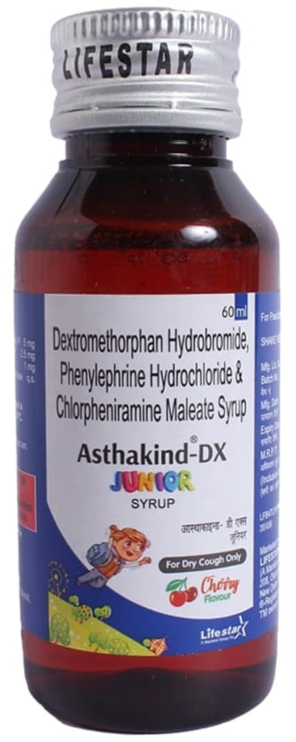 Asthakind-DX Junior Syrup Cherry एक संयोजन दवा है जिसका उपयोग सूखी खांसी के उपचार में किया जाता है। यह छींकने, नाक बहने, आंखों में पानी आना और गले में जलन जैसे एलर्जी के लक्षणों से राहत दिलाता है। यह नाक में जमाव या घुटन से भी राहत देता है।