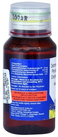 Salt Composition : Phenylephrine (2.5mg/5ml) + Chlorpheniramine Maleate (1mg/5ml) + Dextromethorphan Hydrobromide (5mg/5ml)