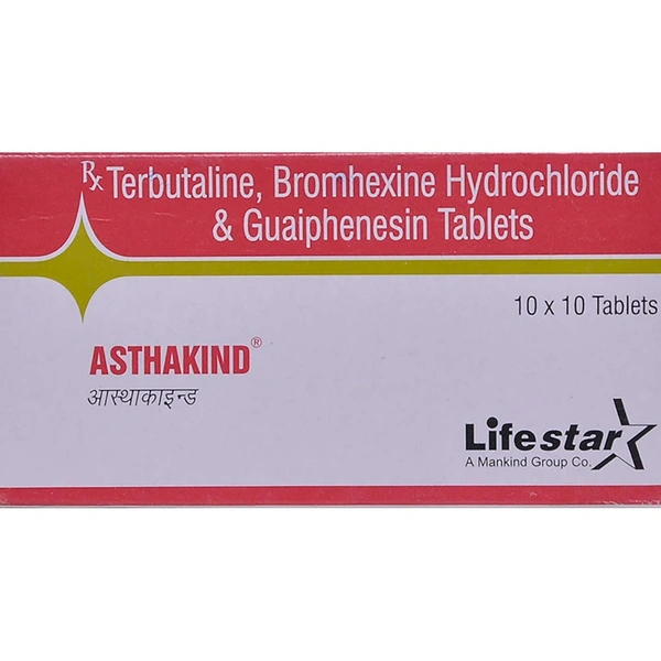 Asthakind Tablet helps to loosen thick mucus, making it easier to cough out. This makes it easier for air to move in and out. It will relieve symptoms such as tightness in your chest, shortness of breath, wheezing and coughing and help you carry out your daily activities more easily. This medicine is safe and effective. It usually starts to work within a few minutes and the effects can last up to several hours.