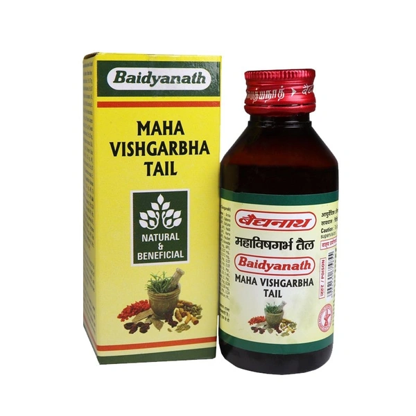 Baidyanath Jhansi Mahavishgarbha Tel is a medicated herbal oil which is used for local application on painful joints, inflammations, muscular pain etc. The base oil is Sesame oil. Maha Vishgarbha oil is useful in all types of joint and muscular pain, hemicrania, sciatica, neuralgia, rheumatism and other inflammatory affections.
