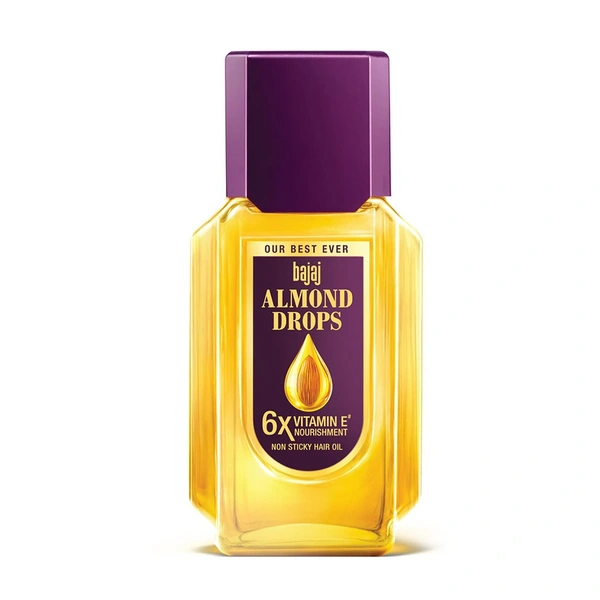 - बजाज बादाम ड्रॉप्स हेयर ऑयल में 6x विटामिन ई होता है जो बालों का गिरना कम करने में मदद करता है और सुंदर और मजबूत बाल देता है।