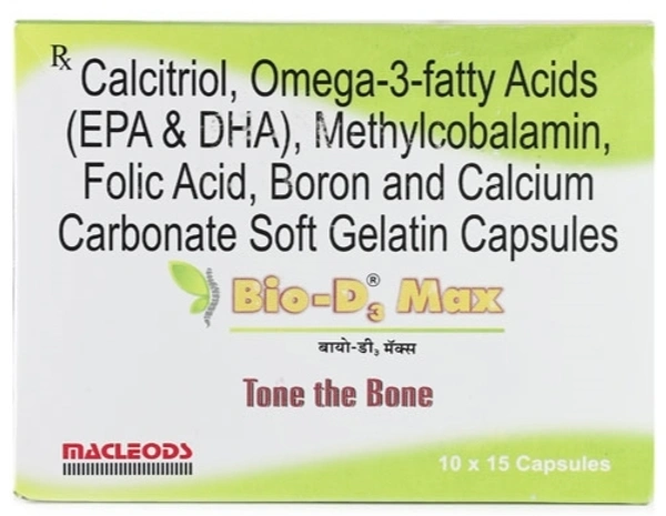 Bio-D3 Max Soft Gelatin Capsule is a nutritional supplement that helps build and maintain strong bones. It helps prevent low calcium levels and helps enhance bone health.