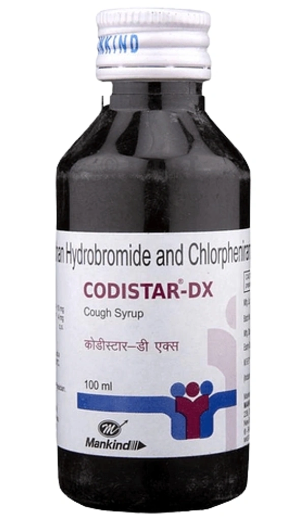 Codistar-DX Syrup is a combination medicine used in the treatment of dry cough. It works by reducing the activity of cough center in the brain. It relieves allergic symptoms like runny nose, watery eyes, sneezing, throat irritation.