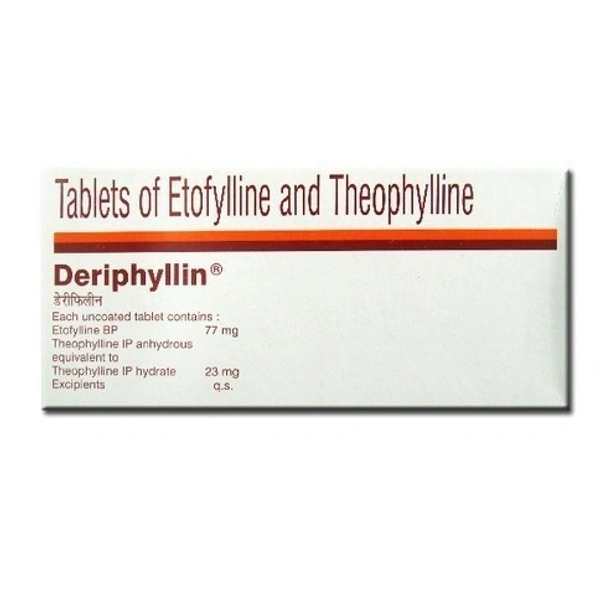 Deriphyllin Tablet is used to treat asthma and chronic obstructive pulmonary disorder (a lung disorder in which the flow of air to the lungs is blocked). It helps in relaxing the muscles of the air passages and making it easier to breathe.