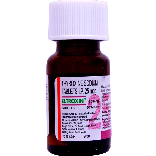 Eltroxin 25mcg Tablet is a synthetic version of thyroxine, a hormone that is naturally produced in your body. When your body does not produce enough thyroxine, you get hypothyroidism. Some symptoms of hypothyroidism include tiredness, weight gain, and muscle aches. This medicine raises your hormone level to the right amount and helps you get rid of these symptoms. For most people, this is a lifelong medication and should not be discontinued without talking to your doctor.