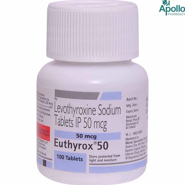 Euthyrox 50 Tablet is a synthetic version of thyroxine, a hormone that is naturally produced in your body. When your body does not produce enough thyroxine, you get hypothyroidism. Some symptoms of hypothyroidism include tiredness, weight gain, and muscle aches. This medicine raises your hormone level to the right amount and helps you get rid of these symptoms. For most people, this is a lifelong medication and should not be discontinued without talking to your doctor.