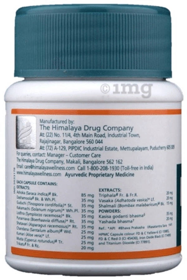 Himalaya Evecare Capsule is a unique 4 power ingredient combination of Ashoka Tree (Ashoka), Asparagus (Shatavari), Lodh Tree (Lodhra) and Malabar Nut (Vasaka), which ensures complete uterine care.