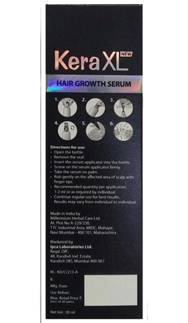 केरा एक्सएल न्यू हेयर ग्रोथ सीरम मॉइस्चराइजर्स से भरपूर है जो बालों के रोम छिद्रों को रूखेपन से बचाता है और बालों के विकास में मदद करता है। यह बालों के झड़ने के लिए जिम्मेदार सूजन को कम करता है और बालों की समस्याओं को दोबारा होने से रोकता है।
