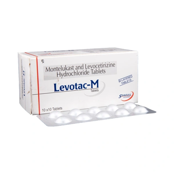 Levotac-M Tablet is a combination medicine used in the treatment of allergic symptoms such as runny nose, stuffy nose, sneezing, itching, swelling, watery eyes and congestion or stuffiness. It also reduces inflammation in the airways and make breathing easier.