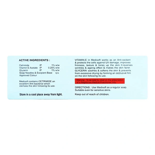 मेडिसॉफ्ट मेडिकेटेड साबुन एक जीवाणुरोधी साबुन है। मेडिसॉफ्ट साबुन त्वचा और चेहरे पर त्वचा के बैक्टीरिया को नियंत्रित करता है। यह मुंहासों और फुंसियों को रोकता है और चेहरे और शरीर को साफ करता है। इससे त्वचा रूखी नहीं होती है। इसके इस्तेमाल के 2 दिनों के भीतर ही यह मुंहासों को कम करना शुरू कर देता है। यह 2-3 घंटे तक चेहरे को मैट और ऑयल फ्री रखता है। मुंहासे के लिए डर्मेटोलॉजिस्ट द्वारा इस साबुन का सुझाव दिया जाता है. हम इस साबुन की सलाह देंगे क्योंकि यह मुहांसों के लिए सबसे अच्छे साबुनों में से एक है। यह एक नरम और ताजा एहसास देता है और अवांछित सीबम को नियंत्रित करता है। अन्य केमिकल युक्त साबुनों की तुलना में साबुन प्रकृति में अधिक हर्बल होता है। यह अपने अस्तित्व में काफी हल्का है (इसकी सामग्री के कारण)।