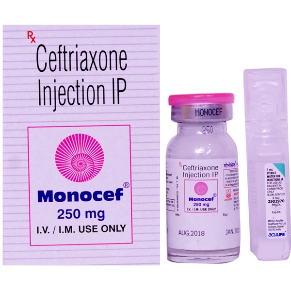 मोनोसेफ 250mg इन्जेक्शन सेफलोस्पोरिन ग्रुप से संबंधित एक एंटीबायोटिक है, जिसका उपयोग आपके शरीर में बैक्टीरिया के संक्रमण के इलाज के लिए किया जाता है. यह मस्तिष्क (जैसे, मैनिंजाइटिस), फेफड़े (जैसे, निमोनिया), कान, मूत्र पथ, त्वचा और कोमल ऊतकों, हड्डियों और जोड़ों, रक्त और हृदय के संक्रमण में प्रभावी है।