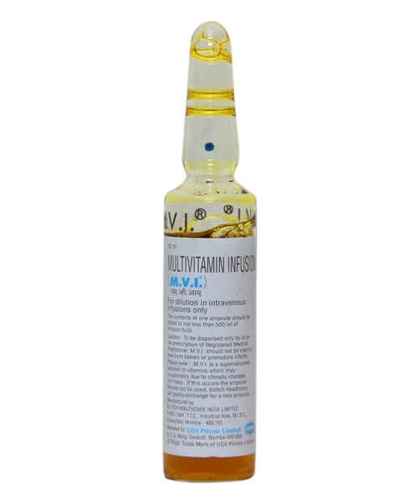 M.V.I. Injection is a combination of vitamins that helps to treat nutritional deficiency. M.V.I. Injection is essential for good vision, healthy skin, bones, cell growth and a healthy immune system. It also helps the heart, brain, lungs, kidneys, and other organs function properly. It also helps boost energy level and improve metabolism. Taking M.V.I. Injection helps you lead a better quality life.