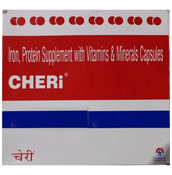 New Cheri Capsule is a health supplement that provides essential nutrients, especially iron, for increasing blood production and ensuring the smooth functioning of various vital processes in the body. The iron in the capsule helps against iron deficiency and keeps anaemia at bay, while the Folic acid and Vitamin B6 content of the capsule help improve nerve tissue health, boost cognitive capabilities, and ensure the proper function of red and white blood cells.