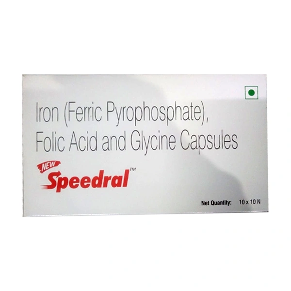 New Speedral Capsule is a combination drug containing Iron and Folic acid that is primarily used to treat anaemia. It works by boosting the production of red blood cells (RBC) in the body. As a result, an adequate number of RBCs are produced in the body, so that body's each tissue gets a sufficient supply of oxygen.