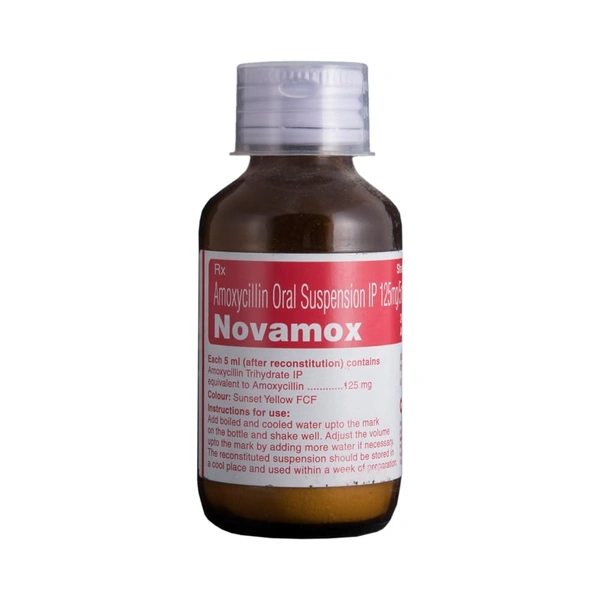 Novamox Oral Suspension is an antibiotic medicine with versatile actions. It can treat a multitude of bacterial infections including those of the ears, eyes, nose, sinus, tonsils, tooth, throat, lungs, skin, gastrointestinal tract, and urinary tract. It may also be effective against peptic ulcer disease.