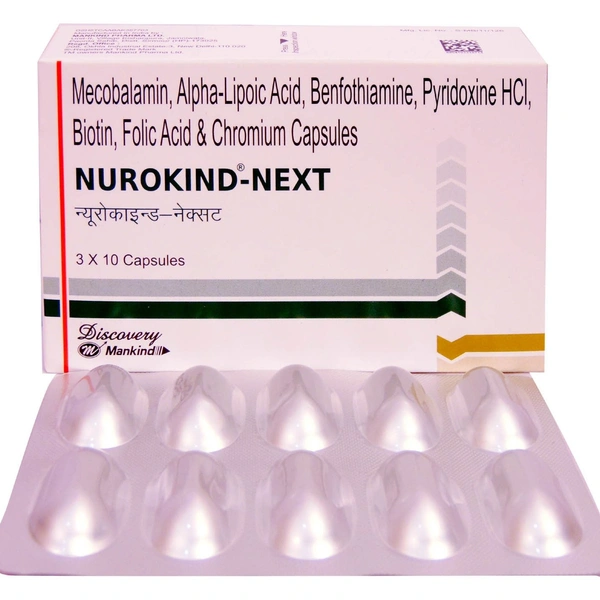 Nurokind-Next Capsule contains Benfothiamine, Mecobalamin, Alpha Lipoic Acid, Pyridoxine, Folic acid, Biotin and Chromium.