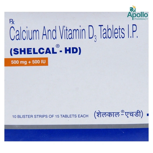 Shelcal - HD Tablet is a dietary supplement with calcium and vitamin D3 that helps keep the bones, muscles and teeth healthy. Vitamin D3 helps enhance calcium absorption in the body.