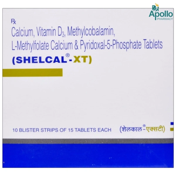 Shelcal XT Tablet helps manage osteoporosis, osteomalacia, and post-menopausal osteoporosis. It is particularly helpful in managing calcium and vitamin D3 deficiency. It improves the absorption of calcium and phosphorus, thereby providing nutrients for bone health and maintenance. It increases bone density by facilitating the absorption of calcium in the intestine. This tablet has calcium and vitamin D as key ingredients, along with vitamin B6 (as pyridoxal-5-phosphate), vitamin B9 (as L-methyl folate calcium), and vitamin B12 (as mecobalamin). The presence of vitamin D3, a fat-soluble vitamin, helps the gut to absorb calcium from food. It also helps the body to maintain adequate levels of two minerals essential for bone health, calcium and phosphorus. This further enables the body to preserve bone health. Maintaining both calcium and vitamin D3 in the body is advised for proper bone health. Please do not take more than the recommended dose, as it may lead to various side effects, including excessive bone calcium loss. If you have any doubts or wish to know the dose, consult your doctor before taking it