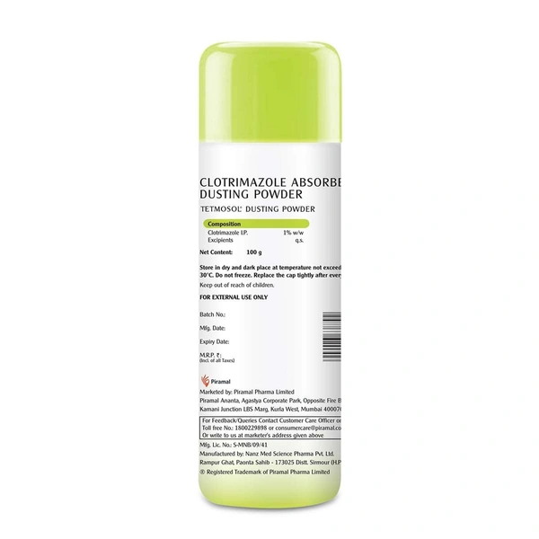 Tetmosol Dusting Powder Anti-Fungal is used to fight skin infections like athlete's foot, jock itch, ringworm and other fungal infections. It also relieves prickly heat caused due to sweat on areas such as the back, neck and shoulder.