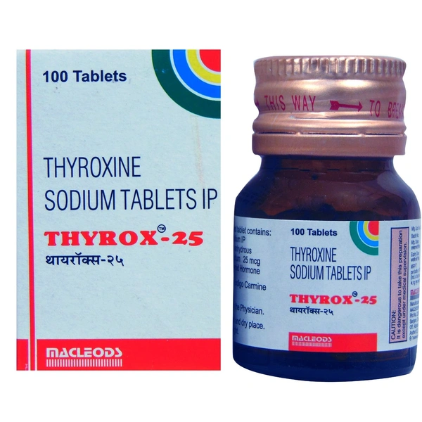 Thyrox 25 Tablet is a synthetic version of thyroxine, a hormone that is naturally produced in your body. When your body does not produce enough thyroxine, you get hypothyroidism. Some symptoms of hypothyroidism include tiredness, weight gain, and muscle aches. This medicine raises your hormone level to the right amount and helps you get rid of these symptoms. For most people, this is a lifelong medication and should not be discontinued without talking to your doctor.