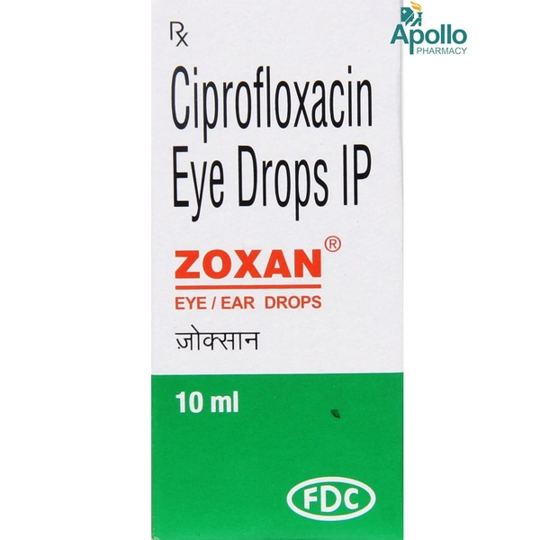 Zoxan Eye/Ear Drops is an antibiotic medicine. It stops the growth of the bacteria that is causing the infection. It helps relieve symptoms such as pain, redness, itching, soreness or ear discharge caused due to eye/ear infections.