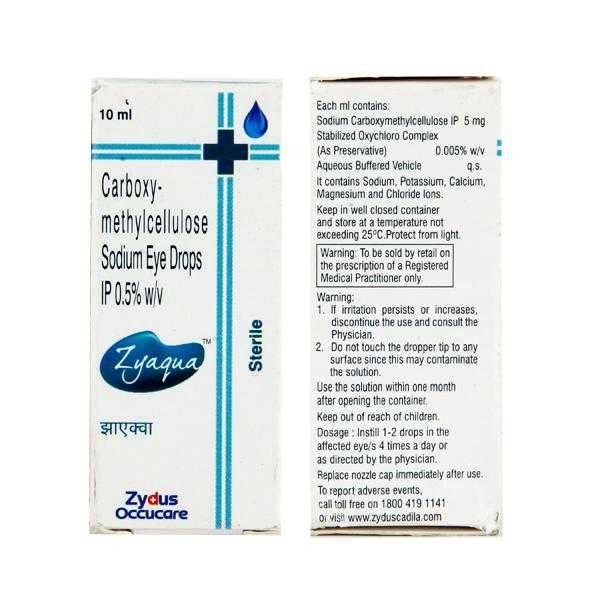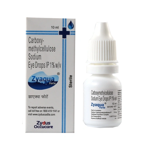 Zyaqua Forte Eye Drop is a prescription medicine used to treat symptoms of dry eyes. It lubricates the eyes helps in maintaining the moisture of the eyes. This way it provides temporary relief from burning and discomfort caused by dry eyes. It also reduces redness and swelling of the eye.